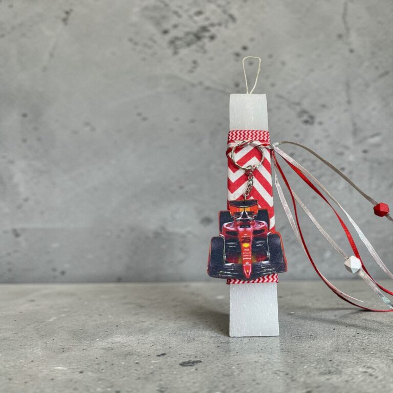 Πασχαλινή λαμπάδα με εντυπωσιακό ξύλινο μπρελόκ Formula 1, ιδανική για μικρούς λάτρεις της ταχύτητας και των αγώνων! Μια δυναμική επιλογή που ξεχωρίζει και χαρίζει ενθουσιασμό σε κάθε παιδί.