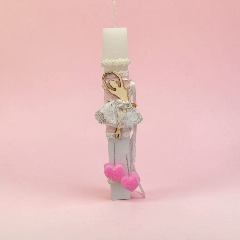 Μια υπέροχη λαμπάδα διακοσμημένη με ξύλινη φιγούρα μπαλαρίνας, που συνδυάζει παράδοση και φαντασία. Η λεπτομερής χειροποίητη μπαλαρίνα με τη ρομαντική φούστα της προσδίδει μια τρυφερή και κομψή αισθητική, ιδανική για μικρές πριγκίπισσες και λάτρεις της χορευτικής τέχνης.